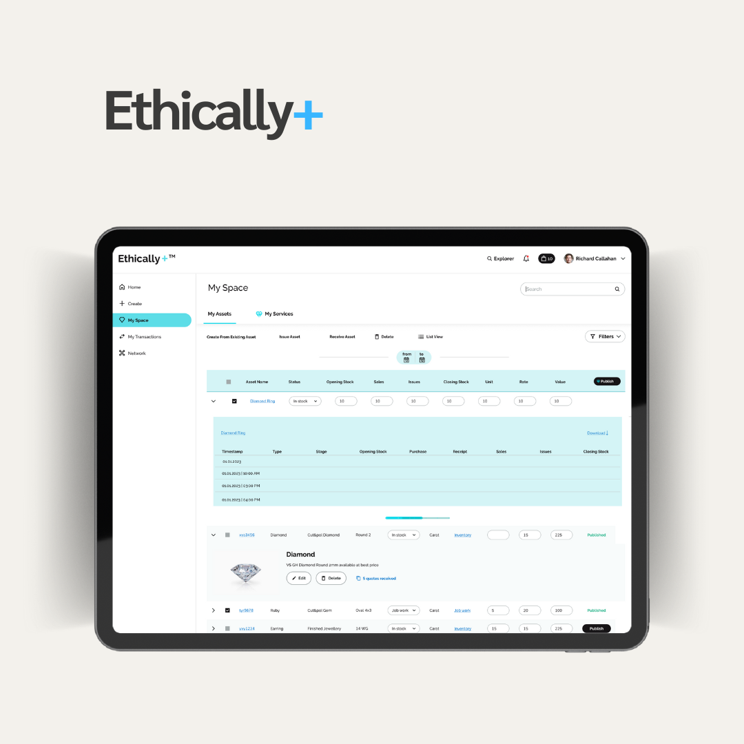 A B2B marketplace bringing together all stakeholders of the jewelry industry under one platform. Ethically+ | Von Muziris Oy