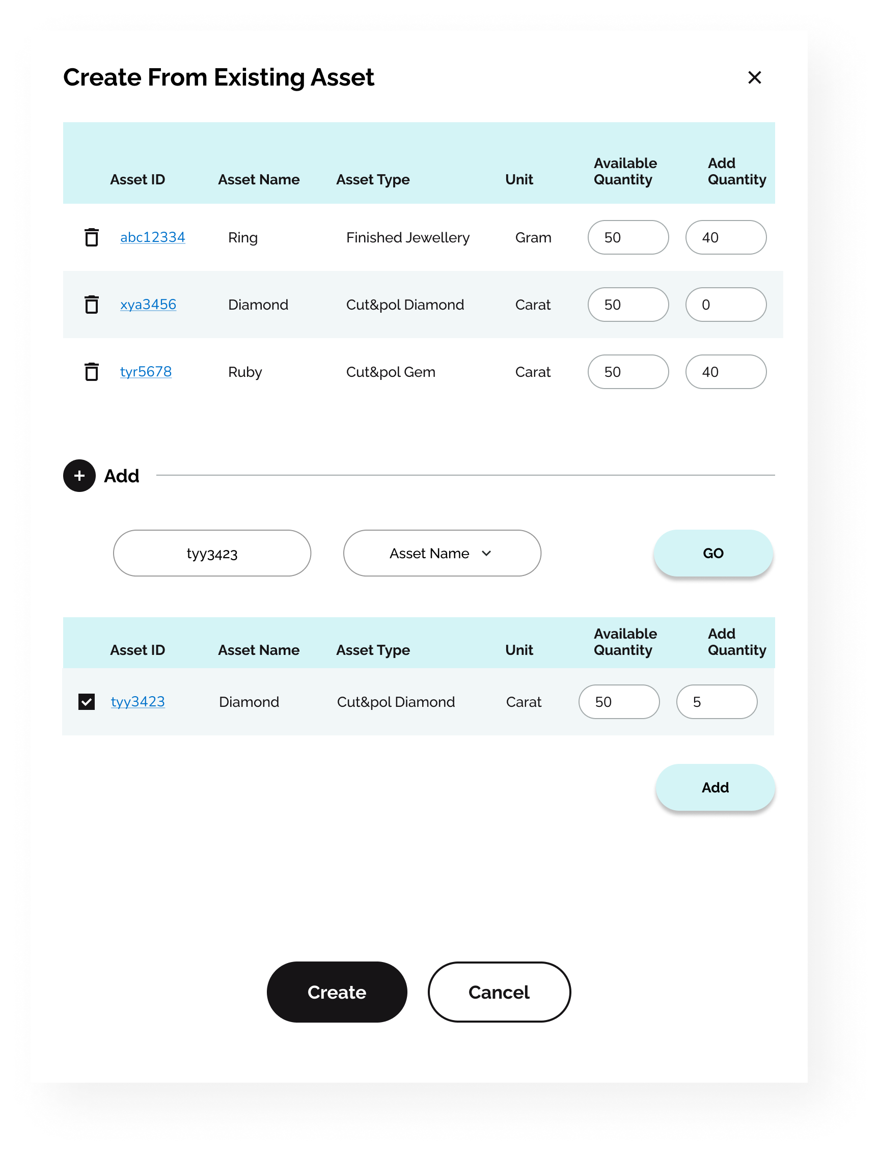 For the ease of users and for having a system as easily changeable as with a pen and paper inventory, various options were included such as creating new assets by combining multiple existing assets with just a few clicks and issuing an asset to say a manufacturer.