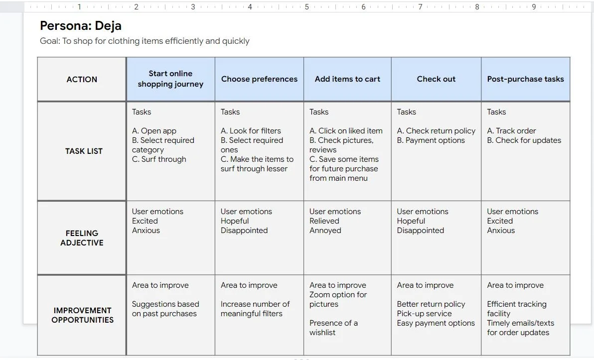To delve deeper into the empathize phase of design, I created user journey maps to better understand the user's experiences as they shop online.