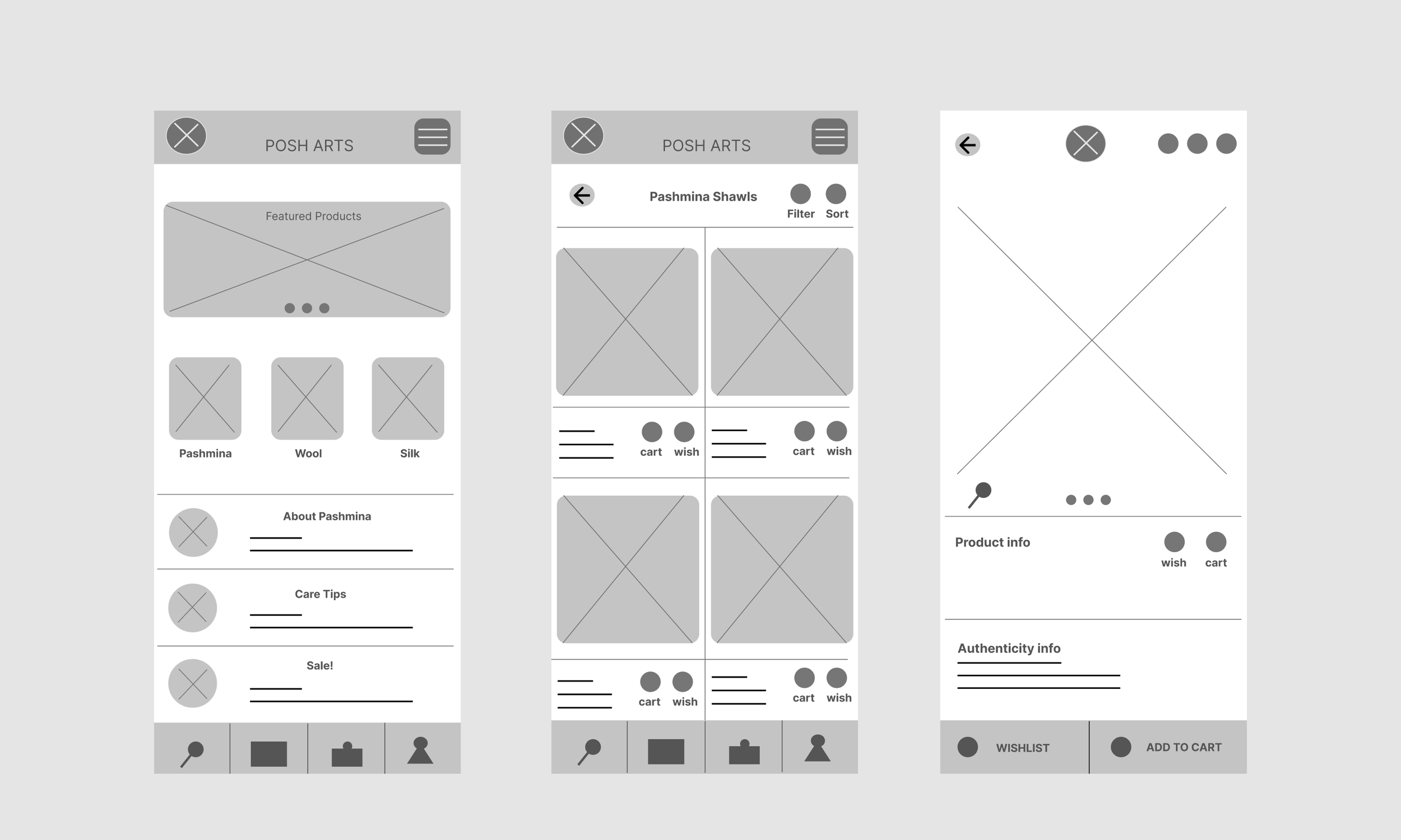 Posh Arts is a mobile app bringing to your doorstep pure, rare, beautifully crafted pashmina products. Through the mobile app, Posh Arts aims to bridge the gap between artisans and buyers.